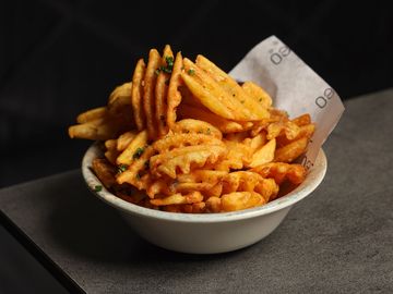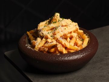 Creamy Truffle Cheese Sauce, Crispy Onions, Chives & Shaved Parmesan