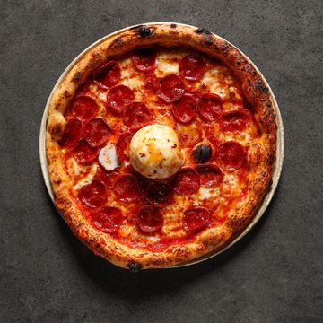 Tomato Sauce, Buffalo Mozzarella, Pepperoni, Hot Black Honey, Local Burrata, Extra Virgin Olive Oil & Parmesan Snow.